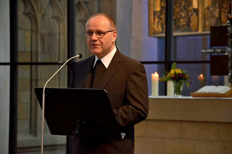 Im Anschluss an die Workshops am Nachmittag feierte Erzbischof Hans-Josef Becker mit den Teilnehmerinnen und Teilnehmern einen Gottesdienst in der St. Petri-Kirche. Zu dem Bibelwort „Der Fremde, der sich bei euch aufhält, soll euch wie ein Einheimischer gelten und du sollst ihn lieben wie dich selbst“ (Lev 19,33-34), sagte Erzbischof Hans-Josef Becker: „Dafür sollen wir Christen einstehen, auch aus der Überzeugung heraus, dass dies für alle auf Dauer am meisten Segen bringen wird.“