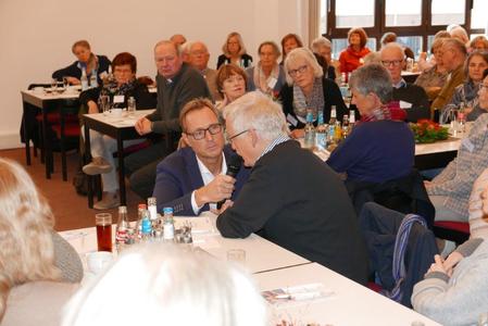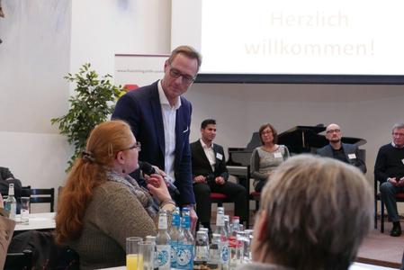 Einsichten und Anregungen dazu bot das Impulsreferat des bekannten Islamismus-Experten Ahmad Mansour. Der israelisch-arabische Psychologe und Autor, der seit 2004 in Deutschland lebt, beschäftigt sich mit Projekten und Initiativen gegen Radikalisierung. Ahmad Mansour plädierte für „weniger Naivität und mehr Realismus“ in der Debatte um die Aufnahme und Integration von Flüchtlingen. Wesentlich für eine gelingende Integration derer, die in Deutschland bleiben wollten, sei die konsequente Vermittlung der Werte des Grundgesetzes und der Menschenrechte. Er vermisse eine innergesellschaftliche Debatte zur Stärkung dieser Werte ebenso wie übergreifende Konzepte zur Wertevermittlung. Die Anwesenden ermunterte er, „klar und bewusst“ für diese Werte einzustehen. „Wie gehen wir beispielsweise damit um, wenn muslimische Eltern ihre Kinder am Freitag in die Moschee anstatt zur Schule schicken und damit die Schulpflicht verletzen“, fragte Mansour. Anstatt solche Themen von Rechtsradikalen instrumentalisieren zu lassen, müssten sie in der Mitte der Gesellschaft differenziert besprochen werden.
