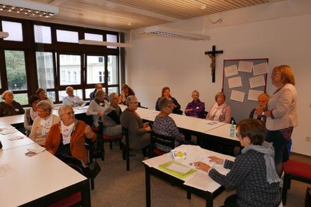 Im Kontakt mit Flüchtlingen, wo die Sprache oft noch eine Barriere darstellt, können andere Wege der Begegnung sehr hilfreich sein. Diese zeigte Maria Manuel von den Caritas-Konferenzen im Erzbistum Paderborn in diesem Workshop auf praktische Weise. Die Teilnehmerinnen lernten verschiedene Tänze aus unterschiedlichen Ländern kennen und probierten diese selbst aus.