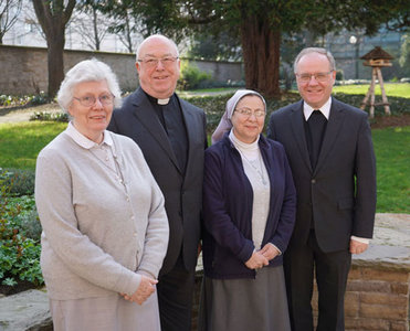 Die Ordensschwestern Helen Haigh (links) und Annie Demerjian berichteten Erzbischof Hans-Josef Becker (2. von links) und Domkapitular Dr. Thomas Witt, Vorsitzender des Diözesan-Caritasverbandes Paderborn, von ihren Hilfsprojekten in Syrien.